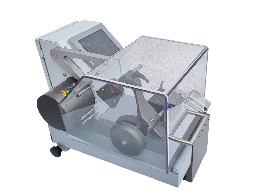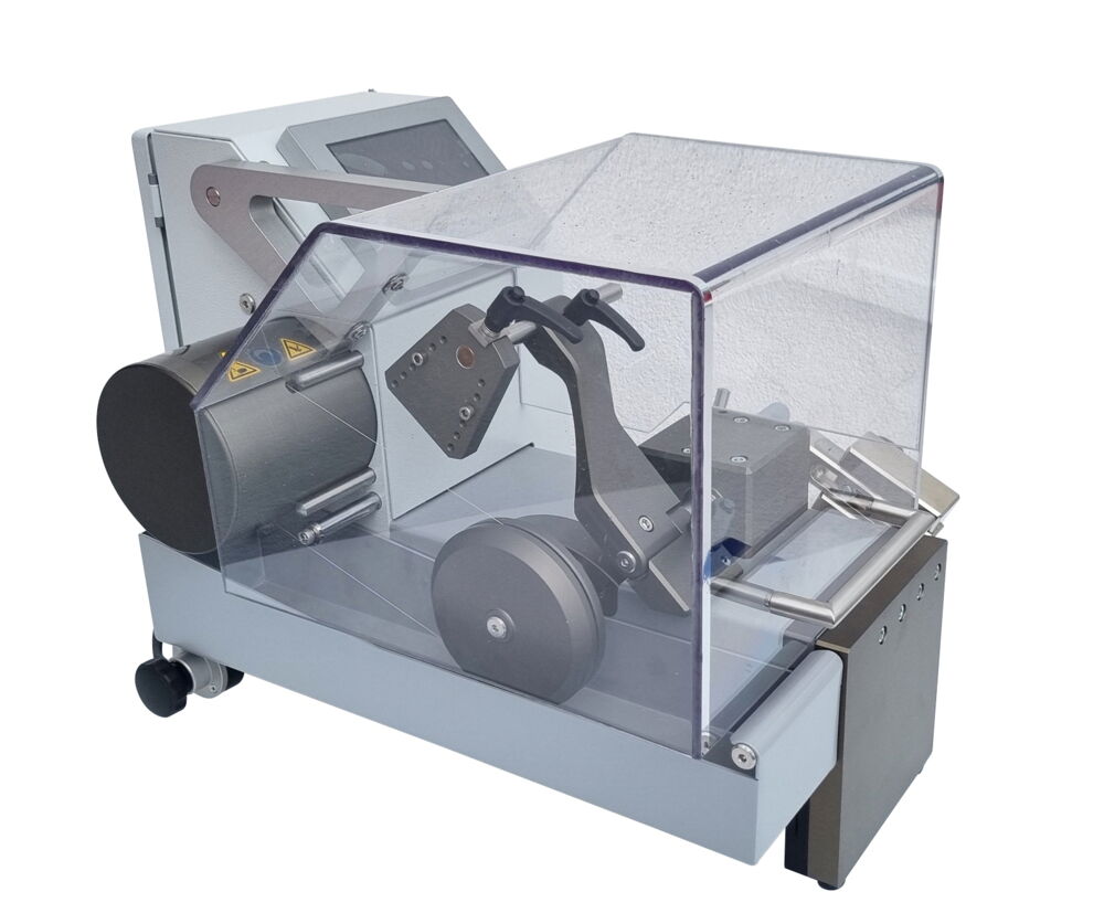 The maximum workpiece cutting area is 90 x 90 mm and the recommended diamond wire thickness is 0.08 to 0.35 mm. The continuously adjustable wire speed goes from 0 to 4 m/s. To ensure a constant cutting pressure, the feed is done by gravity. Workpieces can be cut both wet and dry.