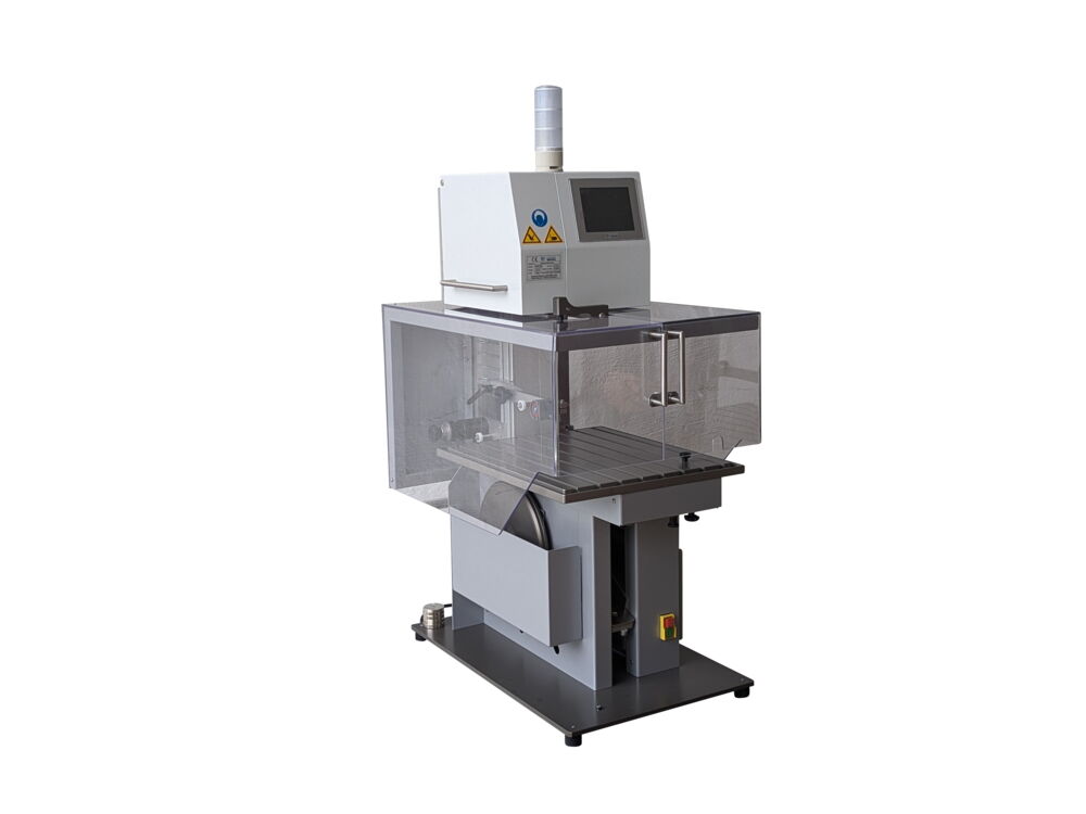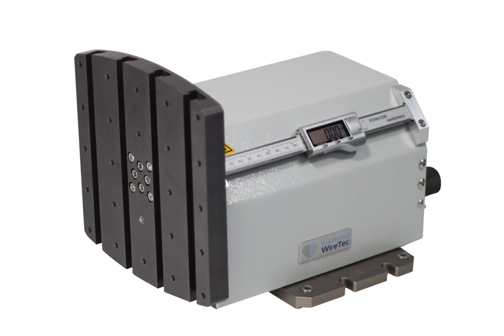 The maximum workpiece cutting area is 250x250 mm and the recommended diamond wire thickness is 0.20 to 0.50 mm. The continuously adjustable wire speed goes from 0 to 4 m/s. To ensure a constant cutting pressure, the feed is done by gravity. Workpieces can be cut both wet and dry.
