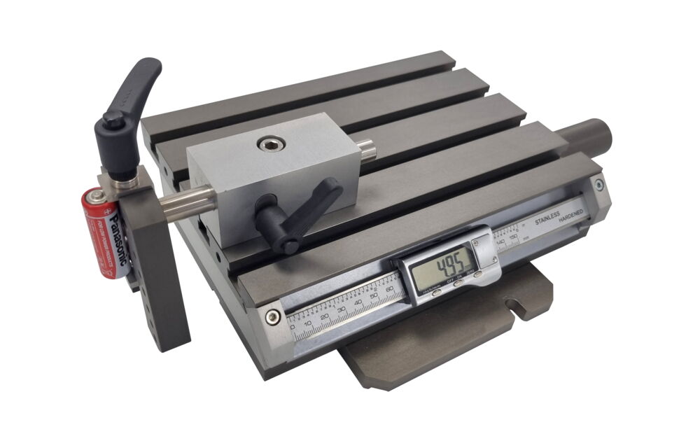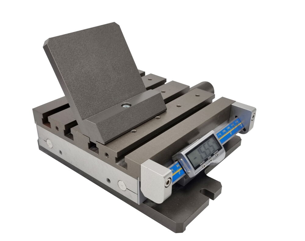 On the slot table of the DWS.250 your workpieces can be fixed flexibly with our offered clamping devices, see accessories below.