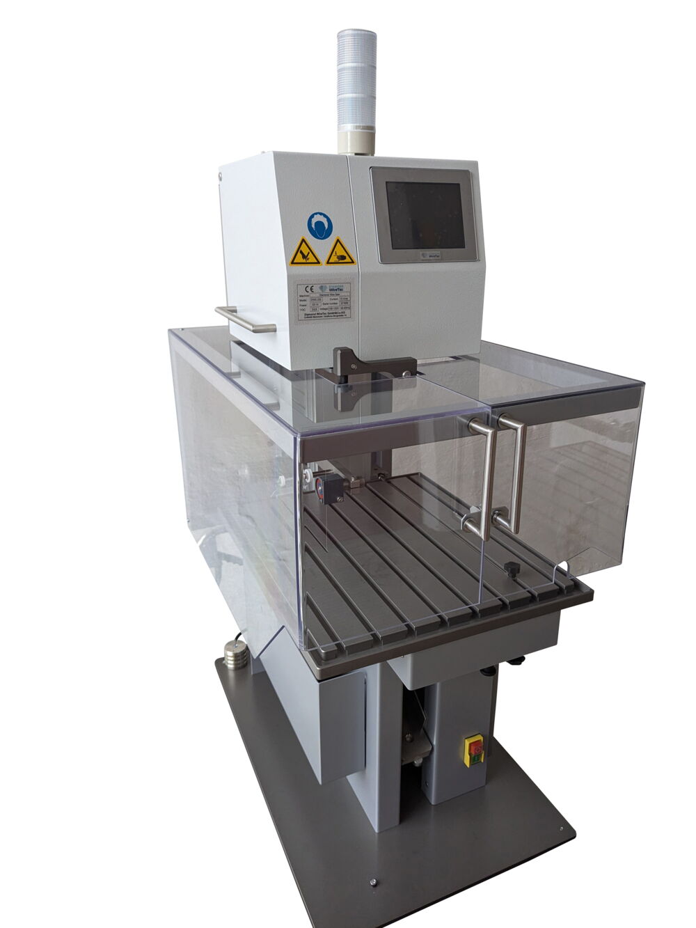 The DWS.250 is equipped with an operator-guided, ergonomically visible touch control. There is currently a choice of six languages (DE-EN-FR-ES-JP-CN). The industrial-grade drive and control technology ensures robust and precise operation. The built-in sensor system for end of cut, open hood or, if necessary, wire breakage ensures safety. The precision saw is made of stainless steel and anodized aluminum.